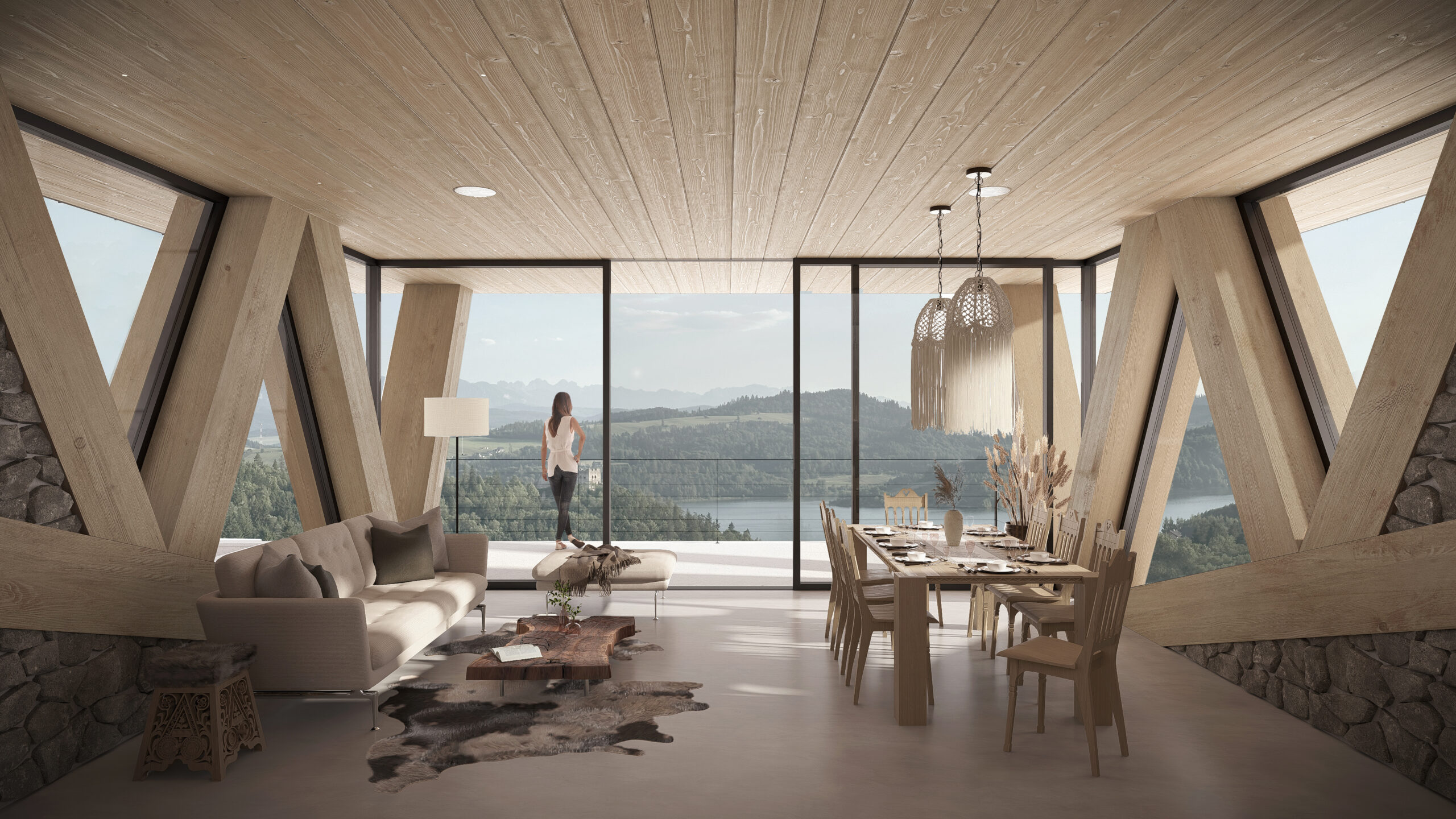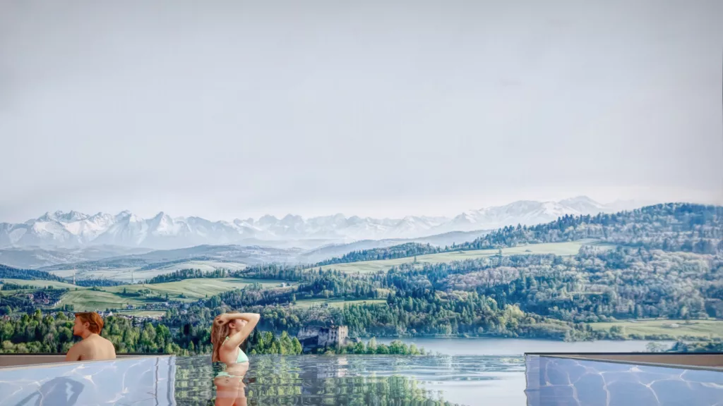 Luksusowa rezydencja usytuowana w najwyżej położonej wsi w Polsce, skąd rozpościera się zapierająca dech w piersiach panorama Tatr, którą można podziwiać z przestronnego tarasu z basenem.