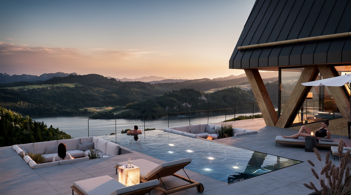 Ekskluzywne nieruchomości w Czorsztynie powstają we współpracy z nagradzaną pracownią Karpiel Steindel Architektura, która projektuje domy w ścisłym dialogu z otaczającym krajobrazem. Nowoczesna forma architektoniczna łączy się tu z lokalnymi inspiracjami, naturalnymi materiałami i starannie dobranymi proporcjami.